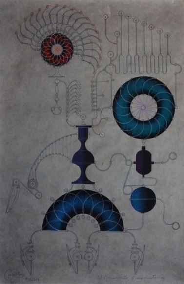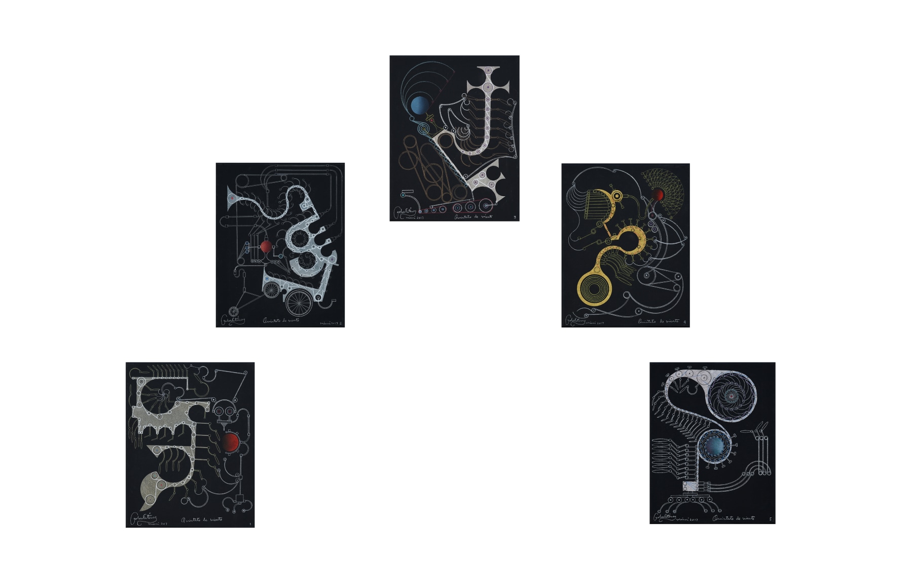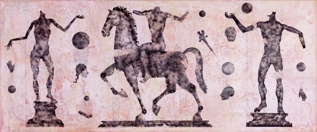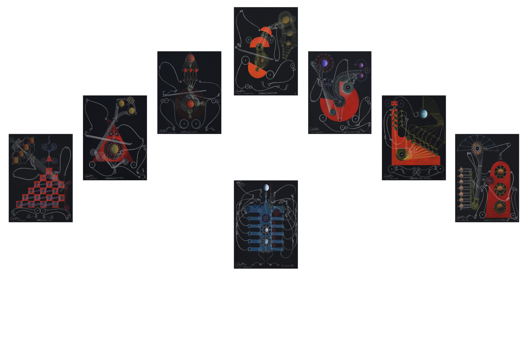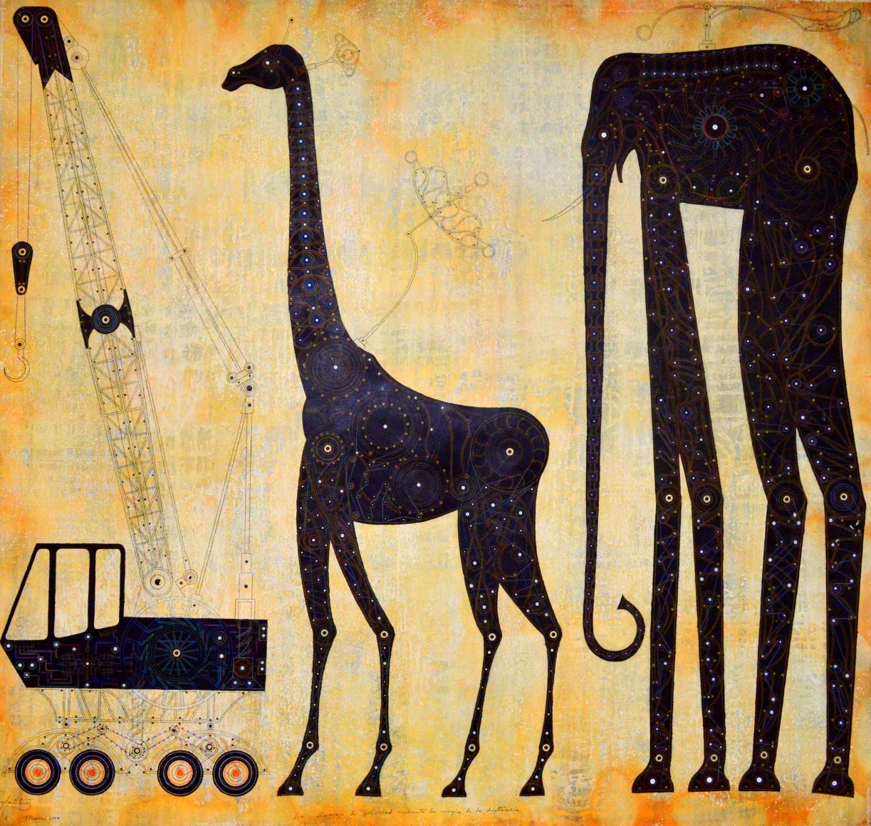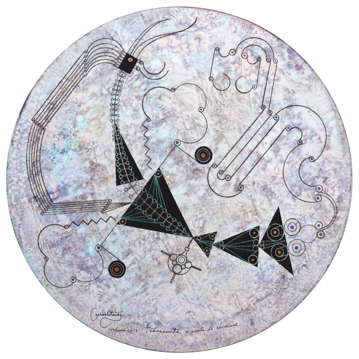 Carlos Estévez (b. 1969, Cuba) has been creating work for more than 30 years, consistently exploring and documenting the multi-layered relationship between man and the greater world. Using philosophical elements as well as his own experiences and ideas, Estévez weaves numerous themes in his steadfast discovery process, including anatomy, music, astrology, contemporary social settings, spirituality, and much more, to create intricately-detailed, often-metaphorical interpretations. Similar to the process used by alchemists, Estévez’s goal to gain knowledge and greater understanding of both individual existence and larger societies serves as the basis of his work.