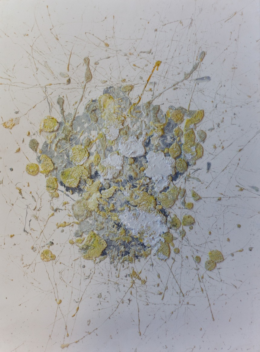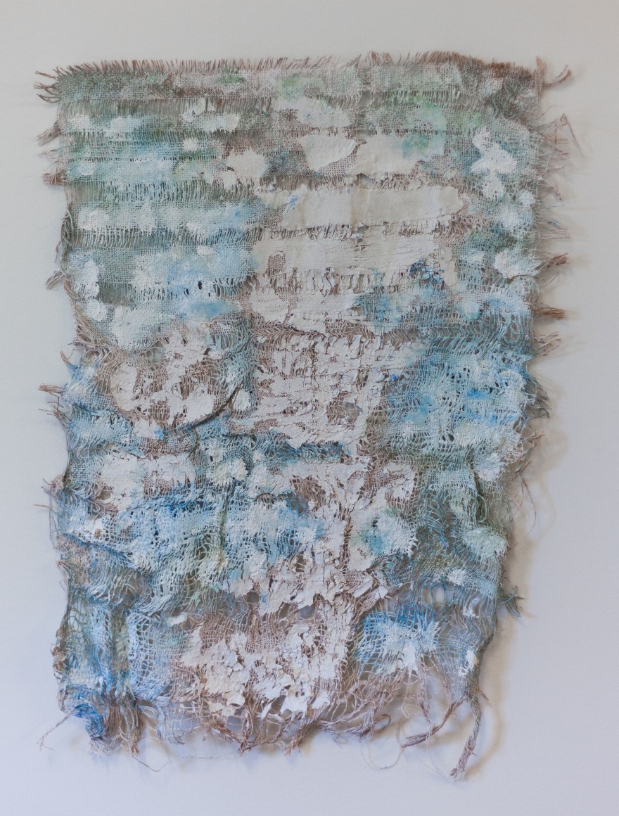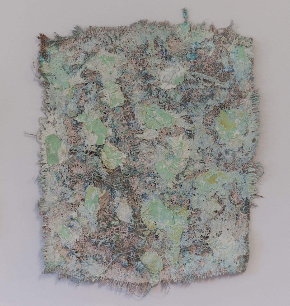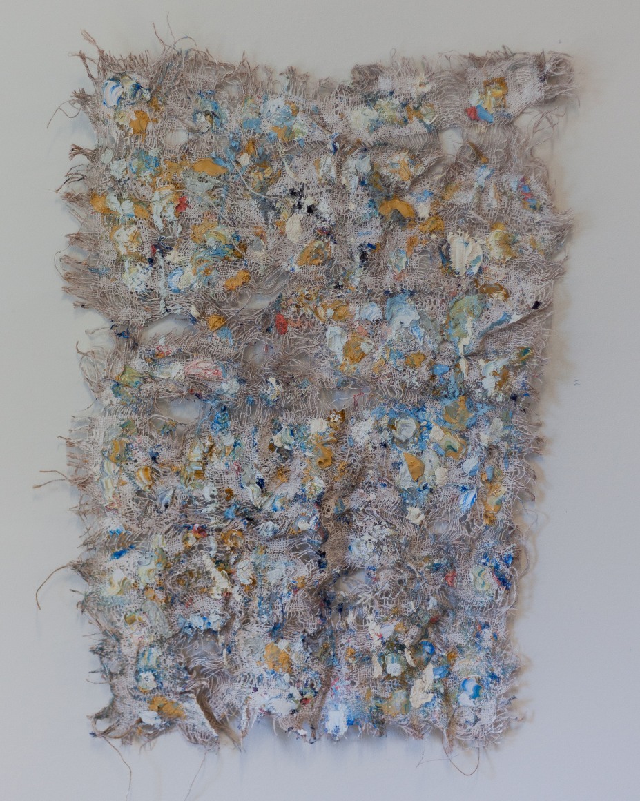 In Cardozo’s large burlap pieces, he frays one string at a time, irreversibly modifying the weave of the threads, allowing brutal holes, irreparable injuries, and unusual cracks. On them, he masterfully intersperses paint, creating a raw renovation, where each piece becomes a rough terrain, a fragile, precocious state of dissolution that also reorganizes its shapes. What results is an intriguing, new path of amazing irregularities, colorful, messy layers, and vulnerable masterpieces that each tell their own stories of breakdown, change, and beautiful transformation.