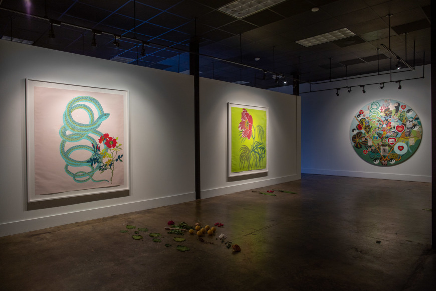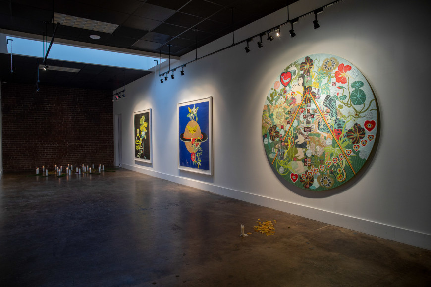 Transcendence. Transformation. Surrender. In her third solo exhibition at LaCa Projects, these themes are evident in Iruka Maria Toro's new body of work, which offers deeply personal insights into her recent name change and the evolution of her work in tandem with a constant exploration of her spiritual identity. Through a system of complex but connected clues into deeply-rooted belief systems, Toro invites viewers inside her world, with references to the tarot, magic, prayer, ritual, femininity, and medicinal practices. As if painting with a technicolor lens, Toro makes visible hidden spiritual dimensions through intense, color-saturated works, intimate and careful dissections of living flora, and juxtapositions revealing a unique and important relationship, echoing her steadfast reverence to the natural environment and its undeniable connection to humankind.
